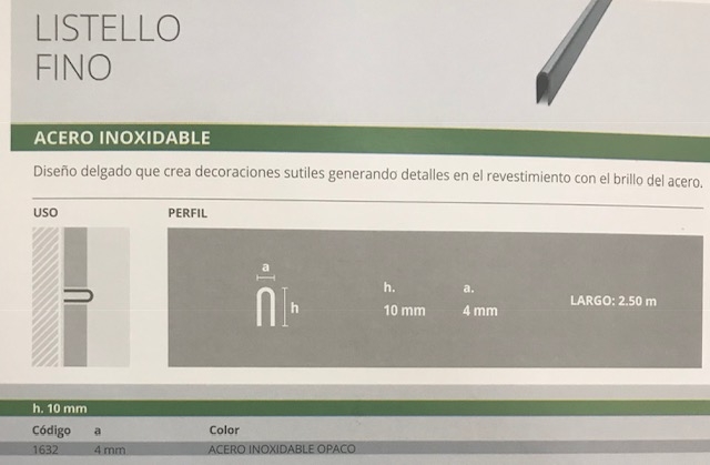 Producto anterior Siguiente producto 1632- ACERO INOX LISTELLO FINO 10X4 OPACO $ 19.854,00 1632- ACERO INOX LISTELLO FINO 10X4 OPACO cantidad Añadir al carrito SKU: 944 Categoría: TERMINACIONES Productos relacionados TERMINACIONESPERFIL NARIZ ESCALON PLATA 2850MM $ 33.302,00 Añadir al carrito TERMINACIONESPERFIL NARIZ ESCALON BRONCE 2850MM $ 45.807,00 Añadir al carrito TERMINACIONESPERFIL NARIZ ESCALON ORO 950MM $ 17.072,00 Añadir al carrito